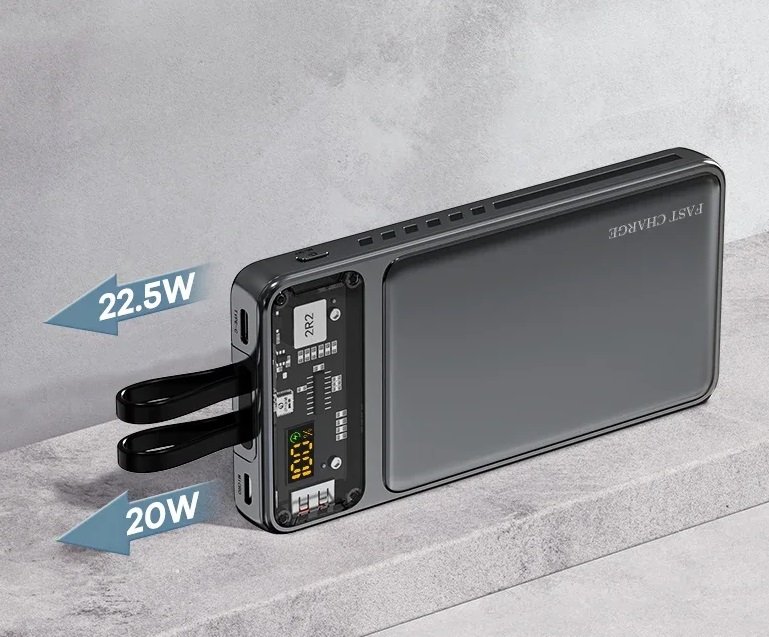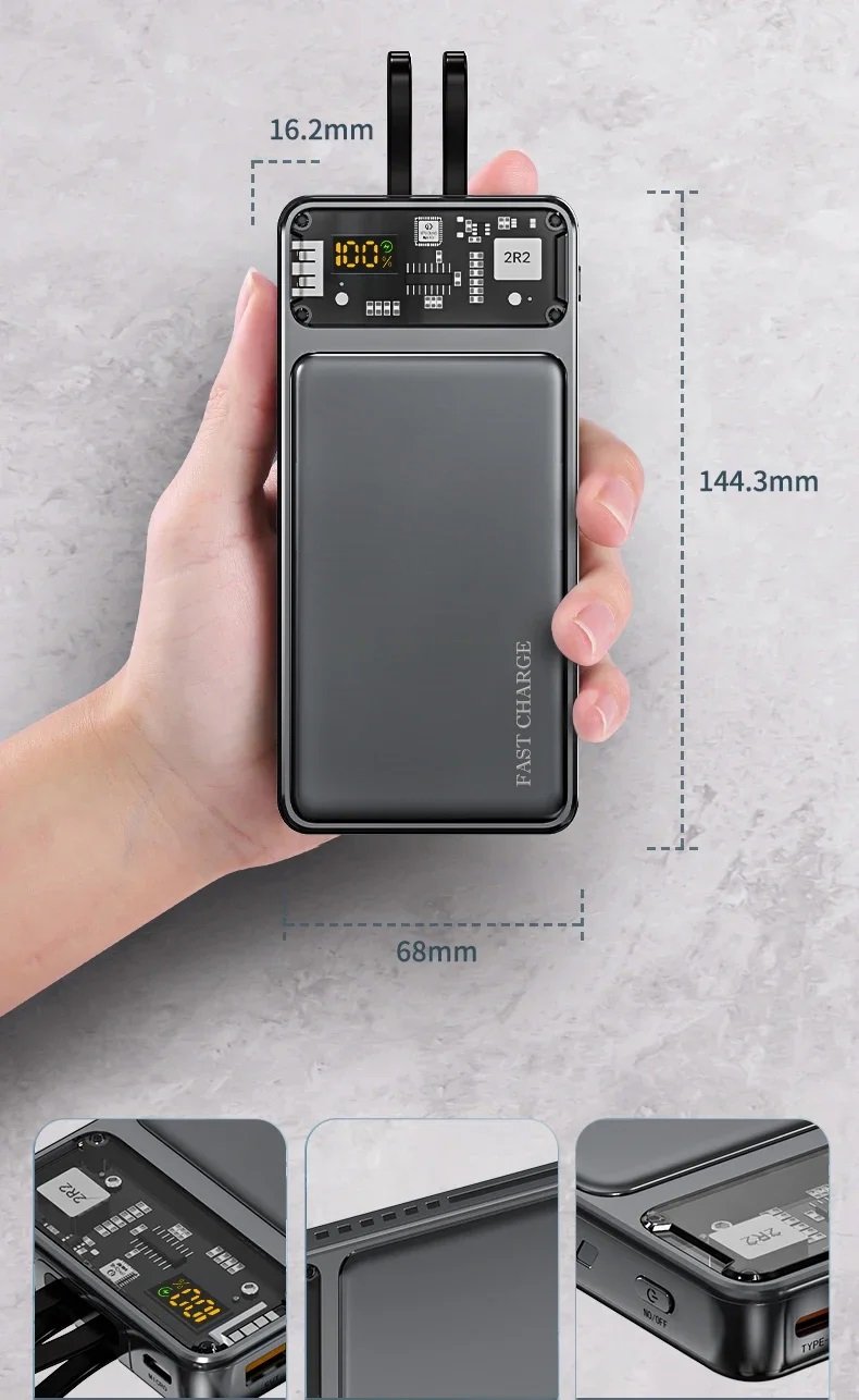 TurboGiga 10000 mAh Power Bank, Fast Charger, 22.5 W, Built In Cable, Type C, Suitable for all Mobile, Tablet, Bluetooth Speakers