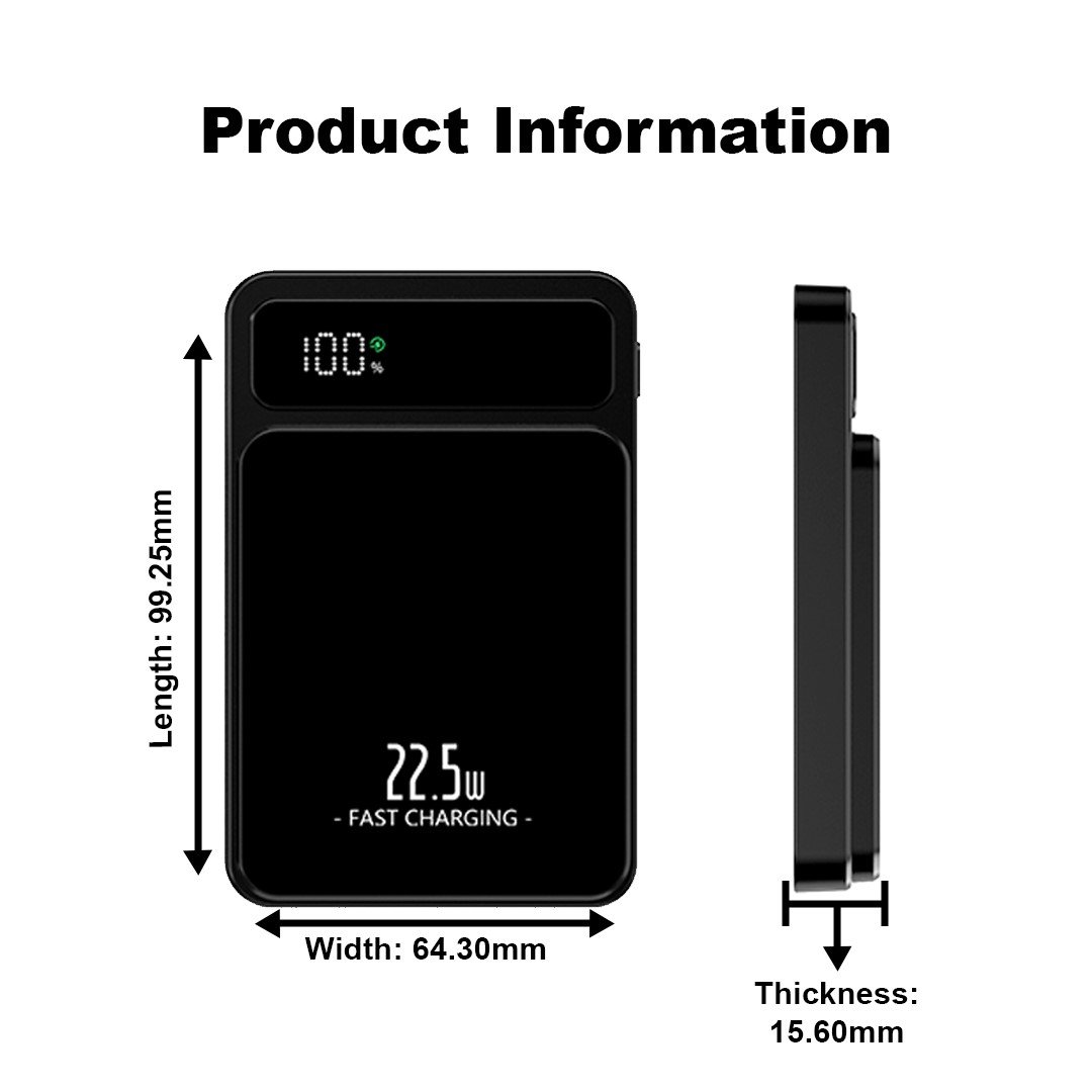 Stay powered throughout the day with this high-performance 10000mAh MagSafe Wireless Power Bank. Designed for seamless compatibility with iPhone models 11 through 17 and all other mobile devices, it combines wireless charging, fast power delivery, and a compact form factor for ultimate convenience.
